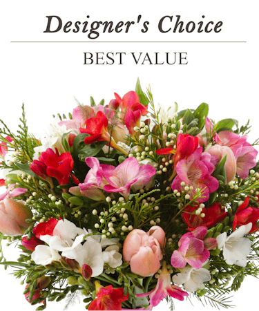 Our designers love to shine when you select from a variety of custom bouquets! We create a design especially for your recipient - or yourself, making the most of the freshest flowers of the season. Choose the size and budget. We'll create a beautiful low cost bouquet that's perfect for the occasion featuring a variety of fresh, assorted flowers and greens gathered together and wrapped ready for you or your recipient to place in a vase. How thoughtful of you!