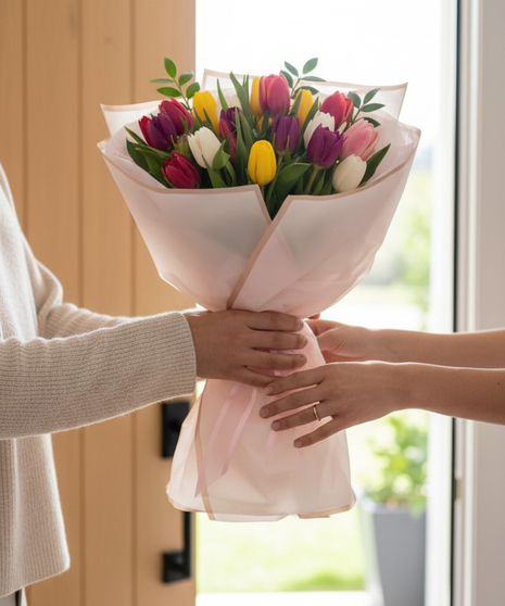 Each bouquet is carefully hand-tied to showcase the natural beauty of the tulips and create a full, vibrant display.