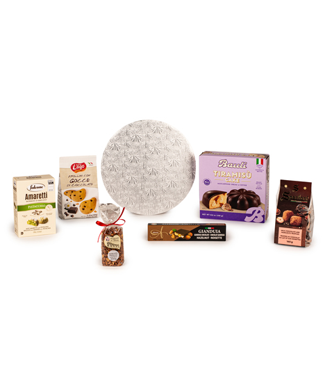 Unwrap pure holiday indulgence with our Silver Sleigh Indulgence Tray - a beautifully curated collection of festive Italian treats displayed inside an elegant silver serving tray.