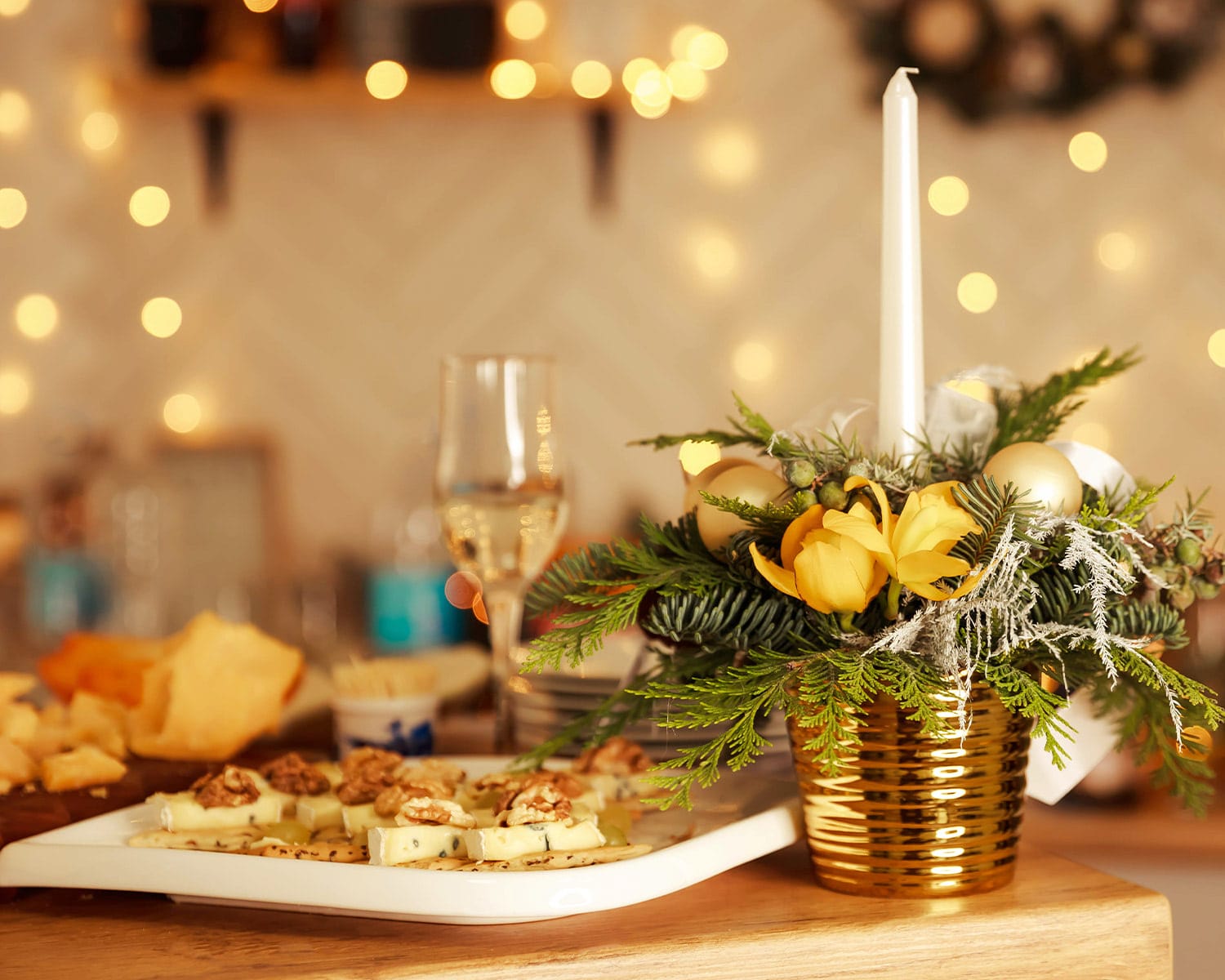 New Year's Eve is your moment to go all in on the razzle dazzle of the occasion. Let your décor channel the moment with glowing candlelight, metallic details, and playful elements, such as disco balls. Layer textures like velvet cushions, shimmery table runners, and reflective glassware to create a space that feels comfortable and luxurious. Choose a colour palette that sets the mood, like classic gold and silver, moody jewel tones, or modern black and white with pops of sparkle. Lighting makes a big difference too; dim overhead lights and let candles, string lights, or even LED fairy lights do the job.
