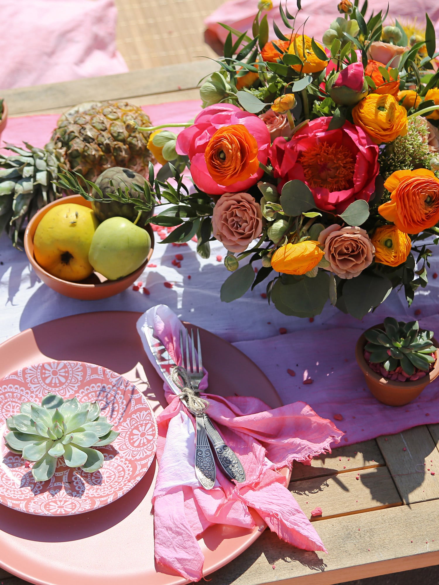 - Fuchsia — A punchy pink that brings to mind tropical flowers, glossy popsicles, and long afternoons in the sun filled with laughter, music, and bright swimsuits. In fresh flowers, fuchsia has a bold, festive presence that immediately catches the eye. Roses, peonies, orchids, and bougainvillea-inspired blooms in this vivid pink shade add drama and excitement to summer arrangements. They’re spirited, celebratory, and impossible to ignore.