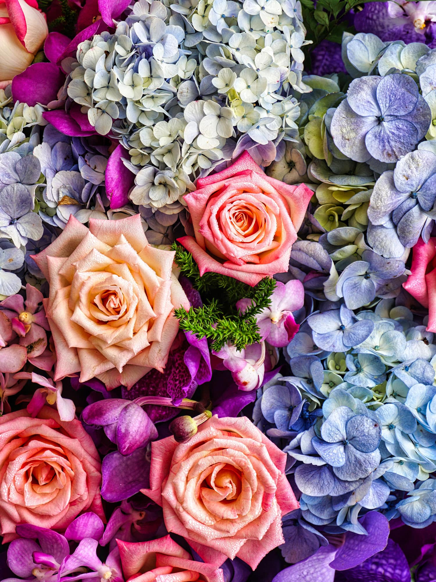 - Cornflower Blue — A soft sky-toned blue that feels like open summer skies and long afternoons with nowhere to be. It’s reminiscent of porch swings, linen curtains moving in the wind, and the pale blue horizon on a clear day. Cornflower blue flowers add a graceful and nostalgic touch to summer designs. Delphinium and blue hydrangeas capture this shade beautifully, lending summer arrangements an airy elegance.